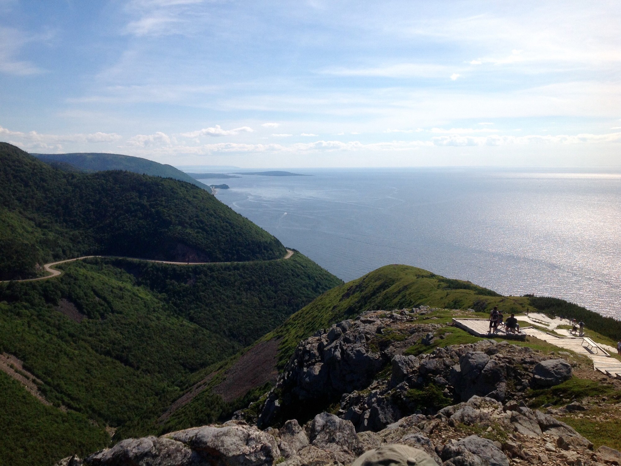If you look carefully at the two photos above, you can see the Cabot Trail as it winds along French Mountain. Imagine what it’s like to ride it on a scooter! 🙂