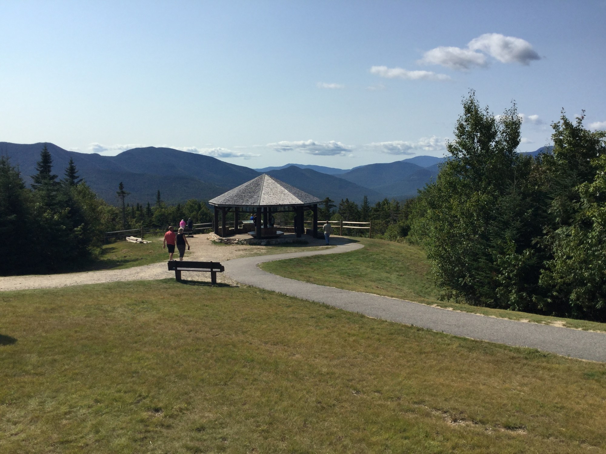 The highway ascends into the White Mountains of New Hampshire and provides several excellent pull-off rest areas from which to enjoy the mountain views.
