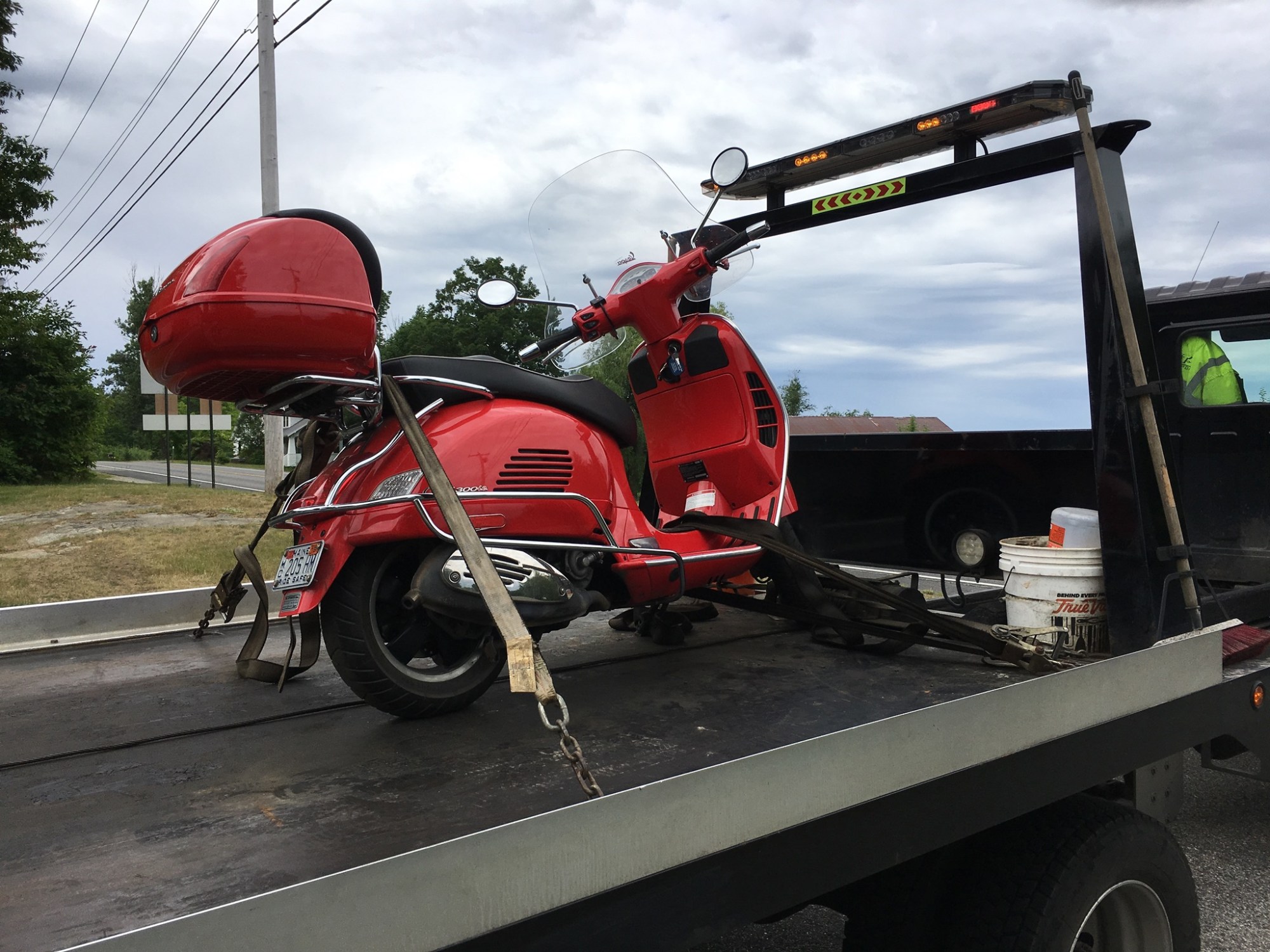 On June 23, Robin and I decided to ride the scooters to Reid State Park, one of our favorite trips (see previous blog post). We passed through downtown Sabattus, Maine and headed east on ME-9, and just past the turnpike on-ramp the scooter died. Again. But this time the engine just quit and would not re-start.