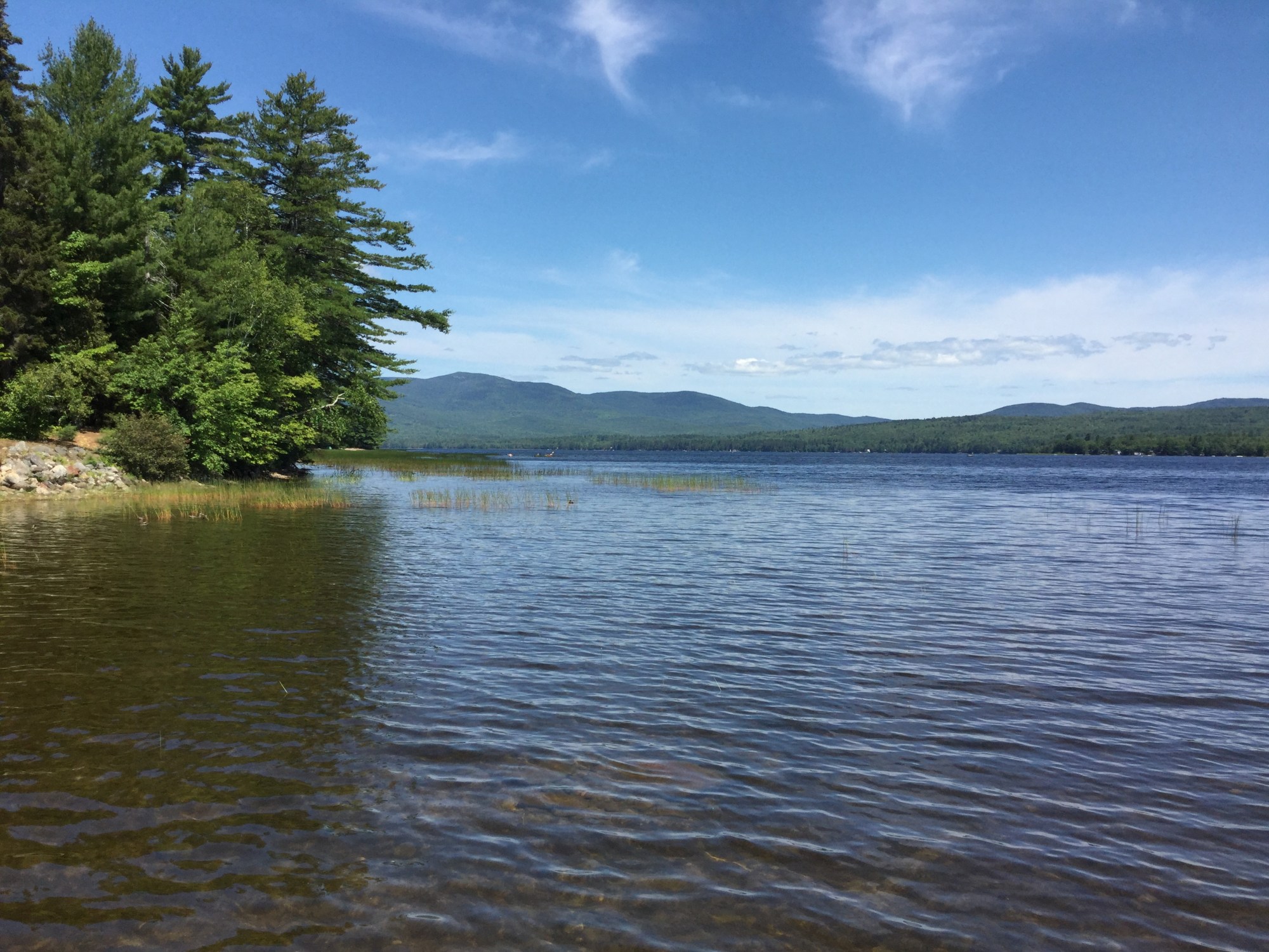 This is an outstanding, family-friendly park with a nice swimming area and a number of interesting displays, centered in one of the prime hiking regions of Maine. Here are some views of the lake:
