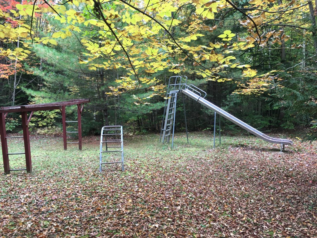 There is a swimming pool, long out of season now, and a playground of sorts…