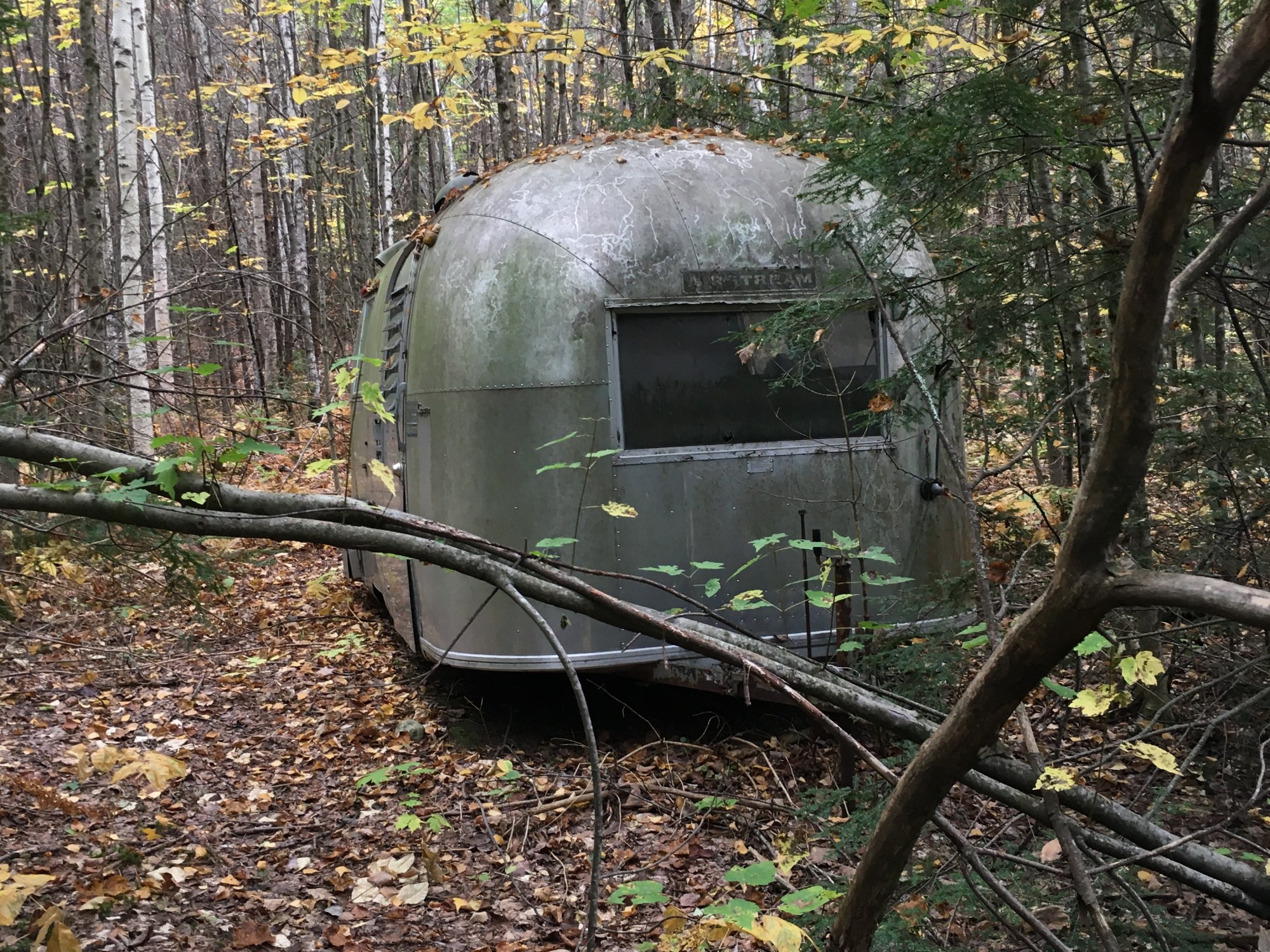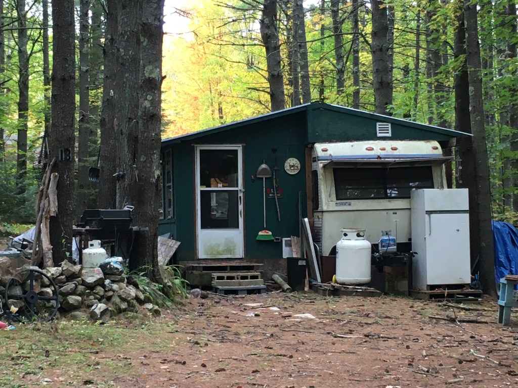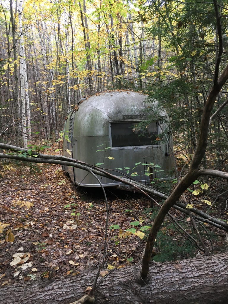 …but the whole place exudes an air of disinterest, decline and decay. What’s unfortunate is that this has the potential to be a lovely campground — the sites are private and wooded in a very peaceful forest setting. But the feeling I get is that the ownership is no longer able to invest in or maintain the place, and is just making reservations and taking whatever can be gotten out of it, for as long as possible. Perhaps this photo sums it up best — a vintage Airstream trailer just rusting in the woods (can aluminum rust?!); that is, a classic now in decline.