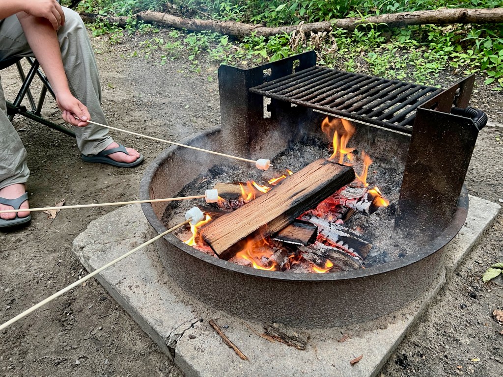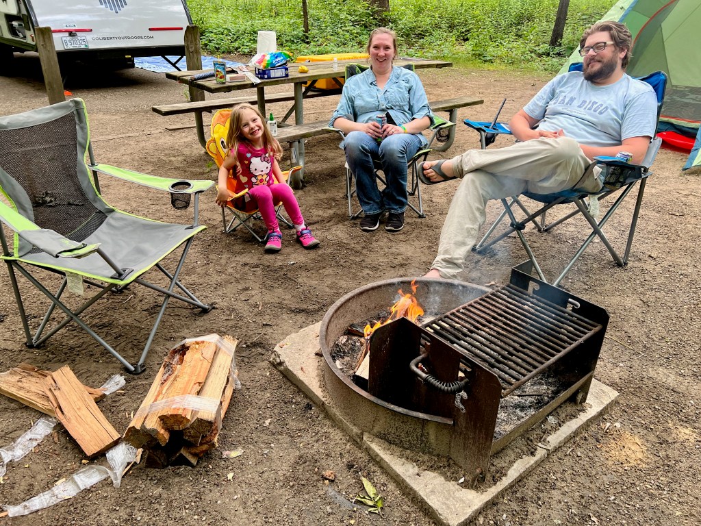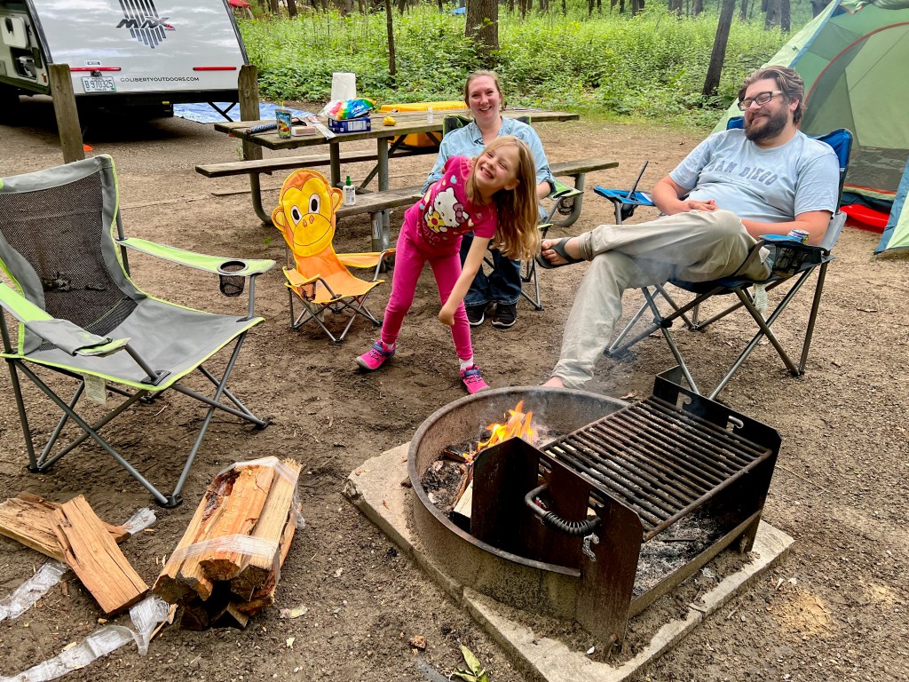 I apologize for the lack of recent posts but I did not feel well last night after a day at Indiana Dunes — so you will see two posts on this date, one for last weekend at the Dunes, and one short post for today. It was about a five-hour drive to the national park from daughter LJ’s house outside of Cincinnati; we arrived in late afternoon Eastern time, but mid-afternoon at Indiana Dunes due to the crossing of the Central time zone boundary. We were fortunate to secure spots at the national park’s Dunewood Campground, which was a really excellent campground with paved drives into well-spaced, wooded gravel campsites, with tidy fire rings and picnic tables and a clean, modern bathhouse. Although I had booked a separate tent site for LJ and family adjacent to mine, when we arrived there was room on my site for their tent, so we used the other site for parking. Here are some views of our campsite: