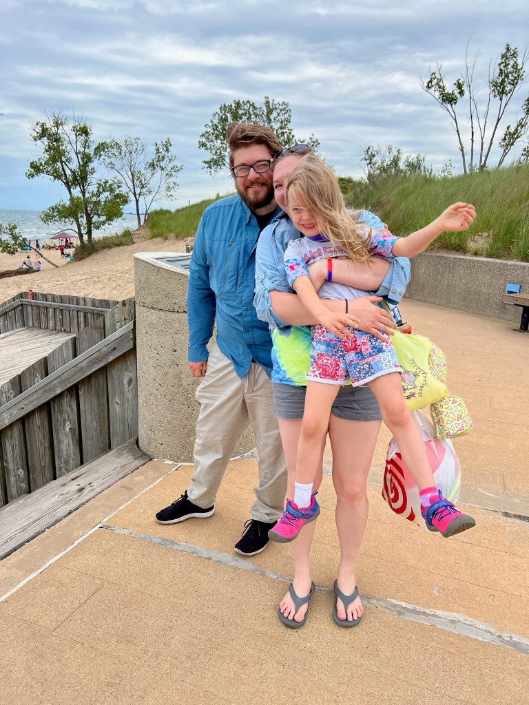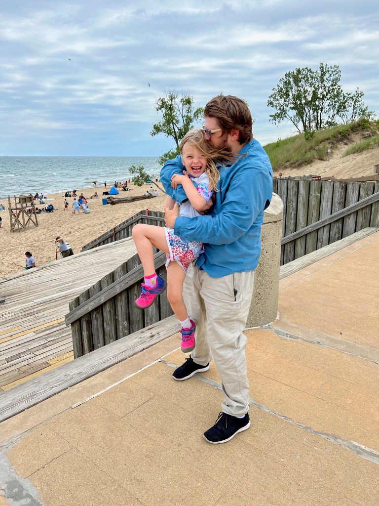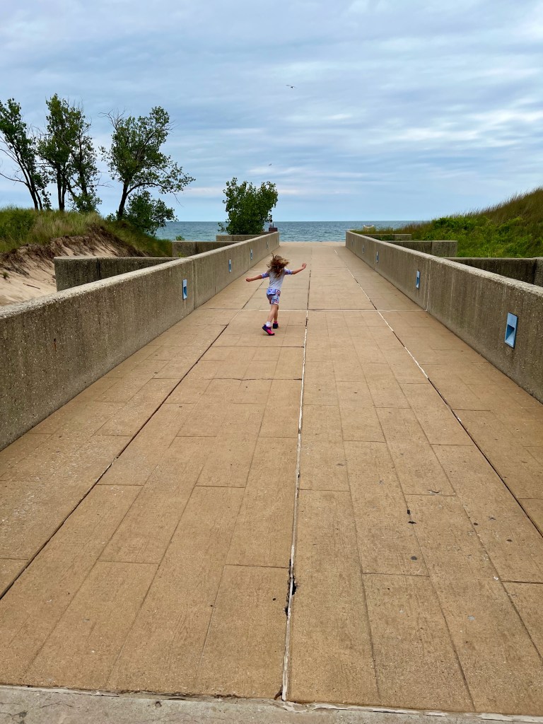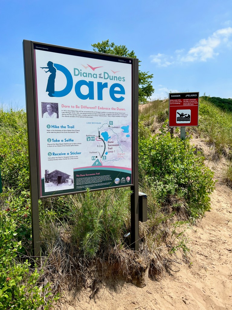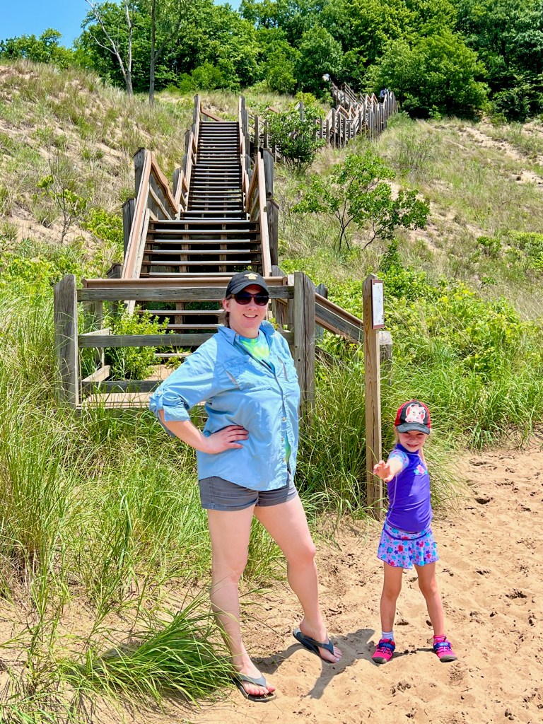 There was, circa WWI, a local woman living among the dunes who apparently made it her habit to bathe nude in Lake Michigan; she thus endeared herself to the local fishermen, who called her “Diana (from the Greek goddess) of the Dunes”. The park has incorporated this legend into its dune walk, which is comprised of an impressive set of staircases circumnavigating the dunes of West Beach. These staircases confine visitors to a narrow path above the dunes, thus protecting the sensitive dune grasses from foot traffic. As it is the grasses which hold the dunes in place, the staircases allow one to explore the dunes without doing any harm. The park calls this staircase system the “Diana of the Dunes Dare”, daring you to walk the entire staircase and rewarding you with a special sticker if you do so. We were up to the challenge!