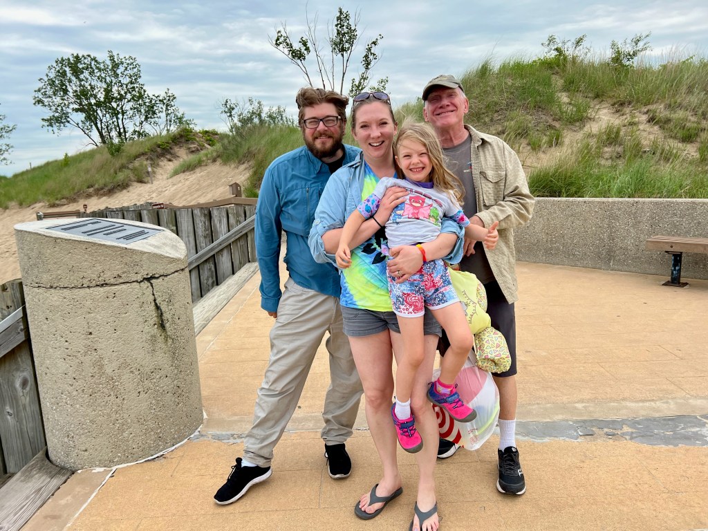 Sadly, a group of inconsiderate yahoos had set up camp across the road from our site; although a strong thunderstorm arrived just before midnight, they nevertheless partied and carried on until 2AM in the rain and the lightning (despite posted quiet hours) and then got up at 5AM to yell and party some more before packing up and leaving. This left us tired and cranky for our day in the national park, and we all had some choice words for them at some point or other during the day. In fact, son-in-law Mike slept so poorly that he had to leave early to ride his motorcycle home so he would be ready for work the next day; he had time only to ride to West Beach before making the five-hour drive home to Cincinnati.