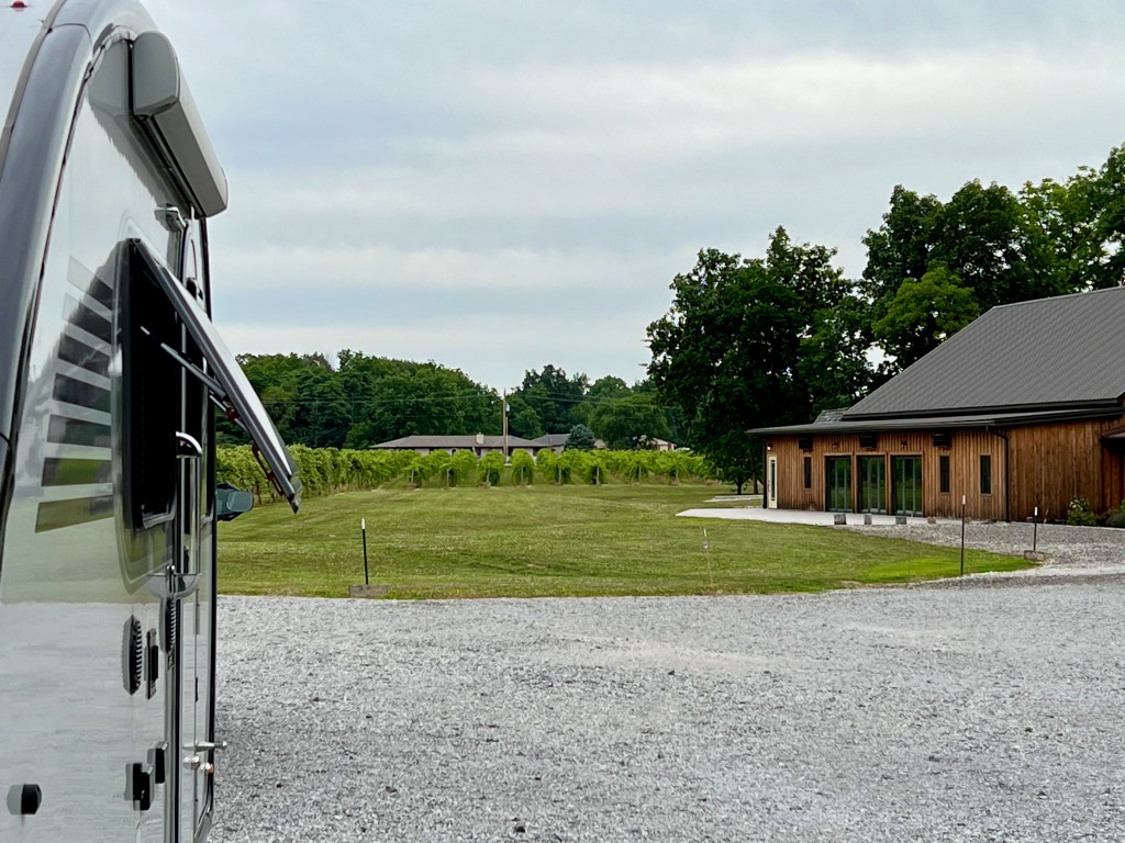 Tonight I find myself at a beautiful Harvest Host vineyard just off I-74, maybe twenty miles west of the Indiana border, in a bucolic middle-America hamlet called Oakwood, Illinois. Sleepy Creek Vineyards seems to be well-established, with extensive vineyards, a retail store and a fairly large “function” building (for weddings and events) as well.