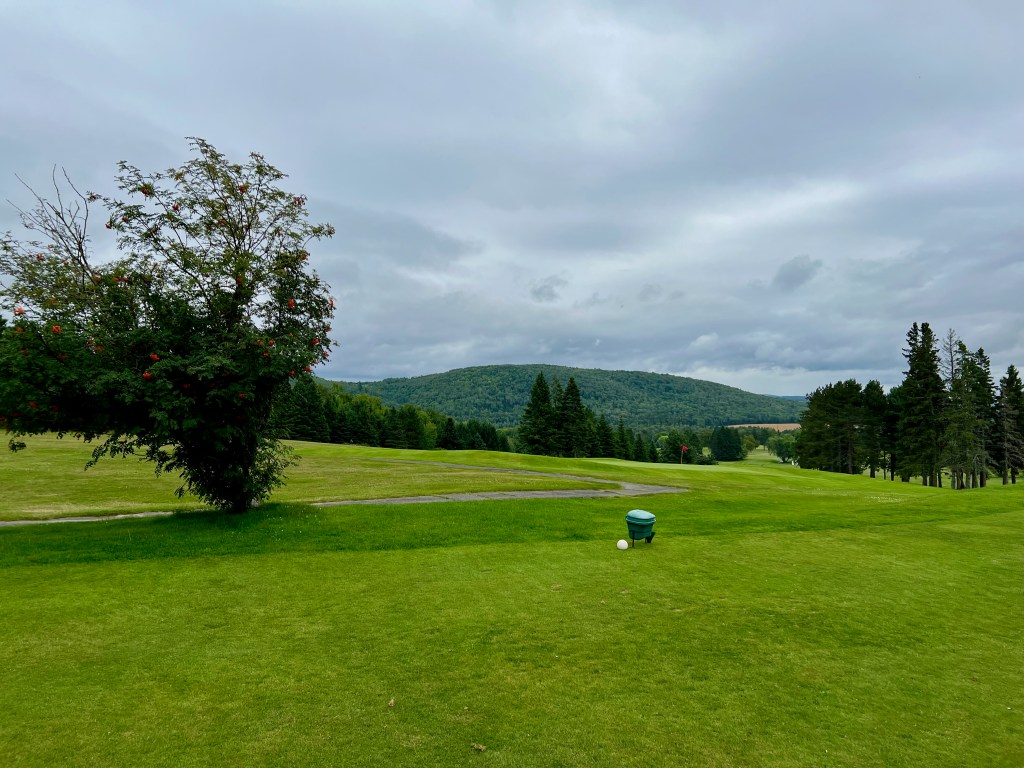 Aroostook Valley Country Club is perhaps unique in that it straddles the international border — the parking lot and the pro shop are in the United States, but the course itself is in Canada. The onset of the covid-19 pandemic in 2020 drove the club to impressive lengths of ingenuity, because it significantly raised the level of border security in the region. Before the pandemic, this golf course (located as it is just three miles from downtown Fort Fairfield, Maine) was easily accessible from Fort Fairfield, a ten-minute drive at most. Americans could drive to the course parking lot without crossing the border, and then just walk from the pro shop across the international border and on to the first tee! Now, due to pandemic regulations, Americans wishing to play this course must access the official border crossing at Perth-Andover, New Brunswick, show a passport, and submit to a customs inspection — and then go through the same process to return home — a process that makes access to and from Aroostook State Park an hour-long drive each way.