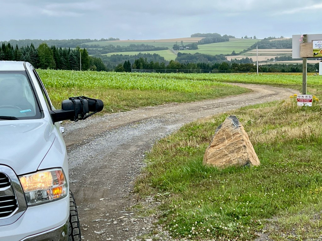But the access road is INSANE! After crossing the border, one must first travel the Transcanada Highway for one exit, and then drive a circuitous route over roads of ever-diminishing quality, until (in the last three miles) one must scan the side of the road for two triangle-shaped stones; and at this point you DRIVE OFF THE ROAD AND INTO A POTATO FIELD!!