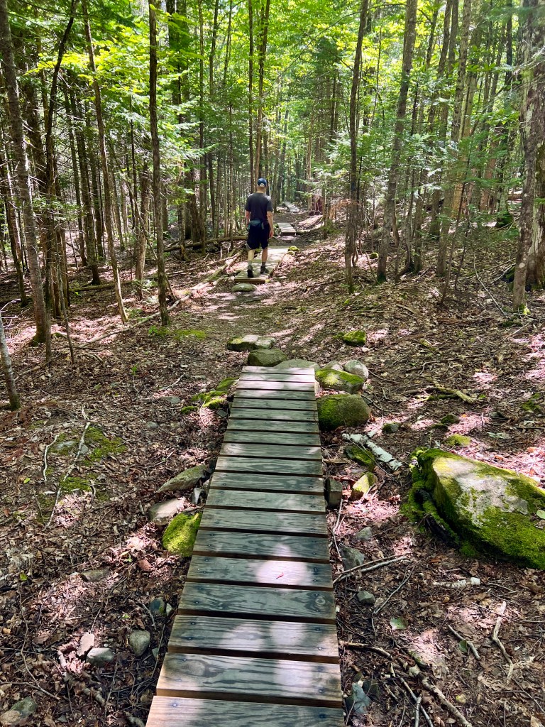 The trail, though steep and tree-covered (read: climbing over roots and rocks!), is well-maintained and reasonably well-marked. Someone put a lot of effort into installing these boardwalks over the soggy spots on the trail down from North Peak: