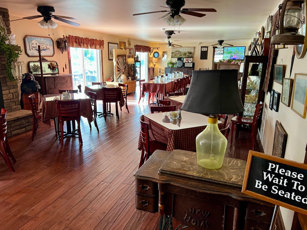 There is another Harvest Host member here tonight, a couple in a class B van. They seem nice enough, although they violated an RV rule of etiquette by parking so close behind me that they can (if they choose) watch me sleep through my back window. That is why, I suppose, RVs come with window shades. A bigger concern, perhaps, is that there is no turnaround here — I’m going to have to back the rig up into the main parking lot in order to be on my way tomorrow. Here’s hoping they’re early risers and clear out before I do!
