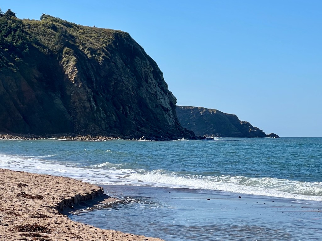 Our stay in Inverness took place at McLeod’s Beach and RV Campground, off NS-219 in Dunvegan, just outside Inverness. At first glance this appears to be just another RV park, with rows and rows of RVs parked along a hillside. But the real treasure here is the beach, as nice as any I’ve seen in Maine or Nova Scotia. How one guy can own a beach like this is beyond me, but that’s the case here.