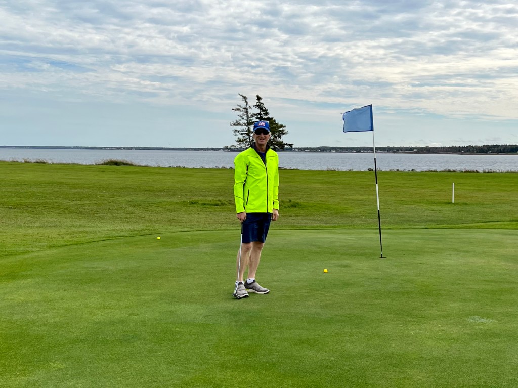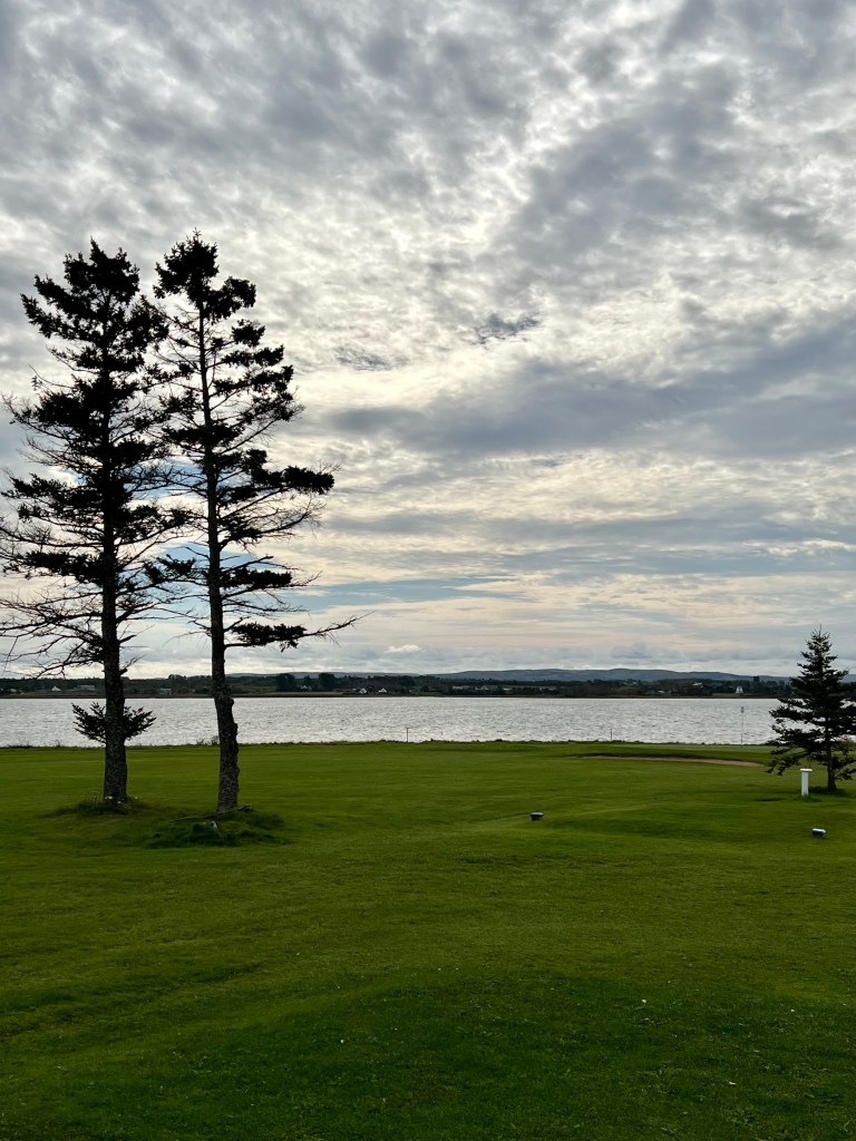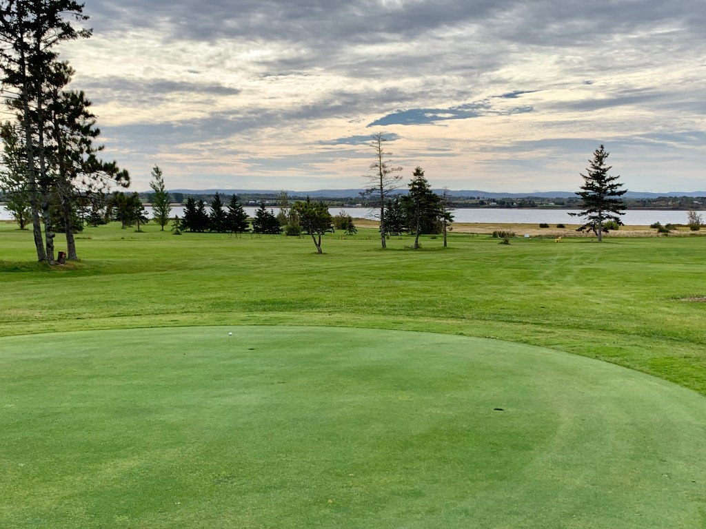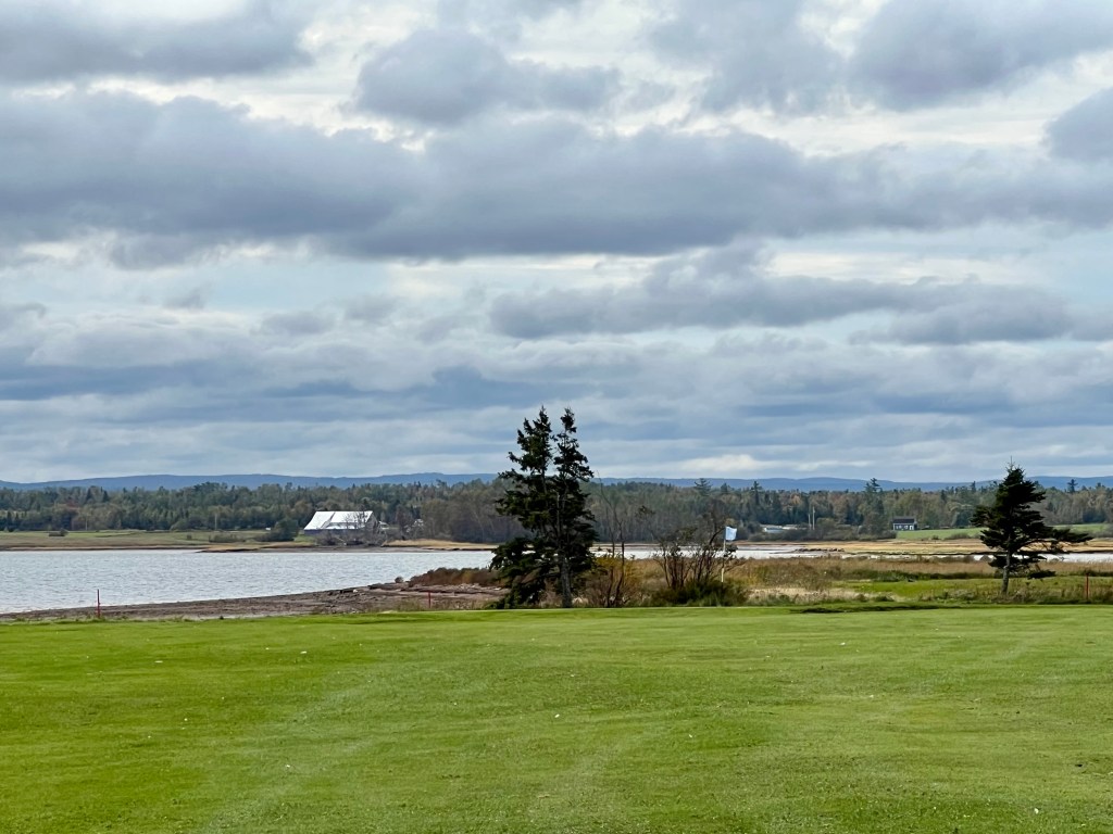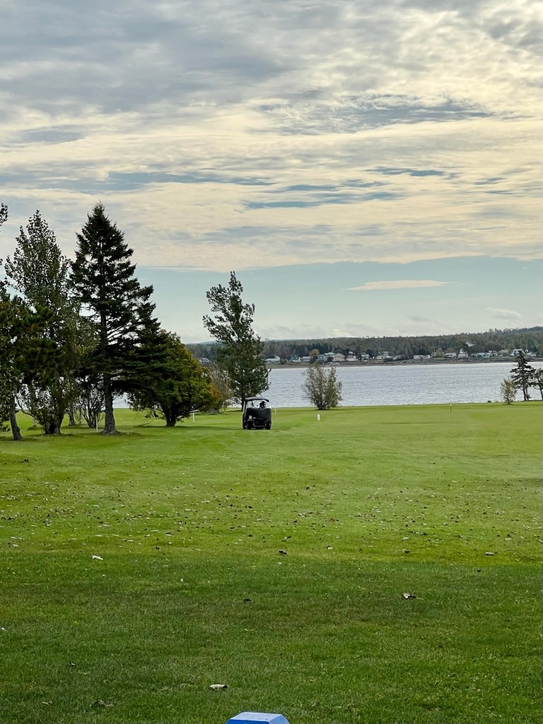 Yesterday we kept ourselves close to the Sunset Watch campground, choosing to play the nearby Brûlée Point golf course, and visiting the adjacent bakery after our round to enjoy a fine lunch (including my first and probably only lobster roll on this trip). Brûlée Point reminds me a lot of my home course, Springbrook, in that it is a low-key and unpretentious sort of place, decently maintained but nothing fancy, with only nine holes which alternate hitting down toward the water, and then up away from the water — but you can see the ocean from every hole.