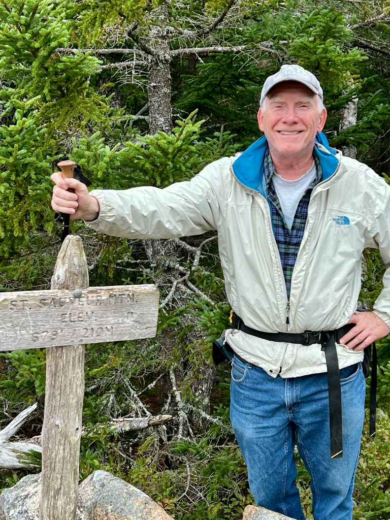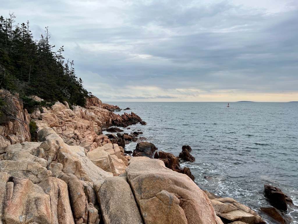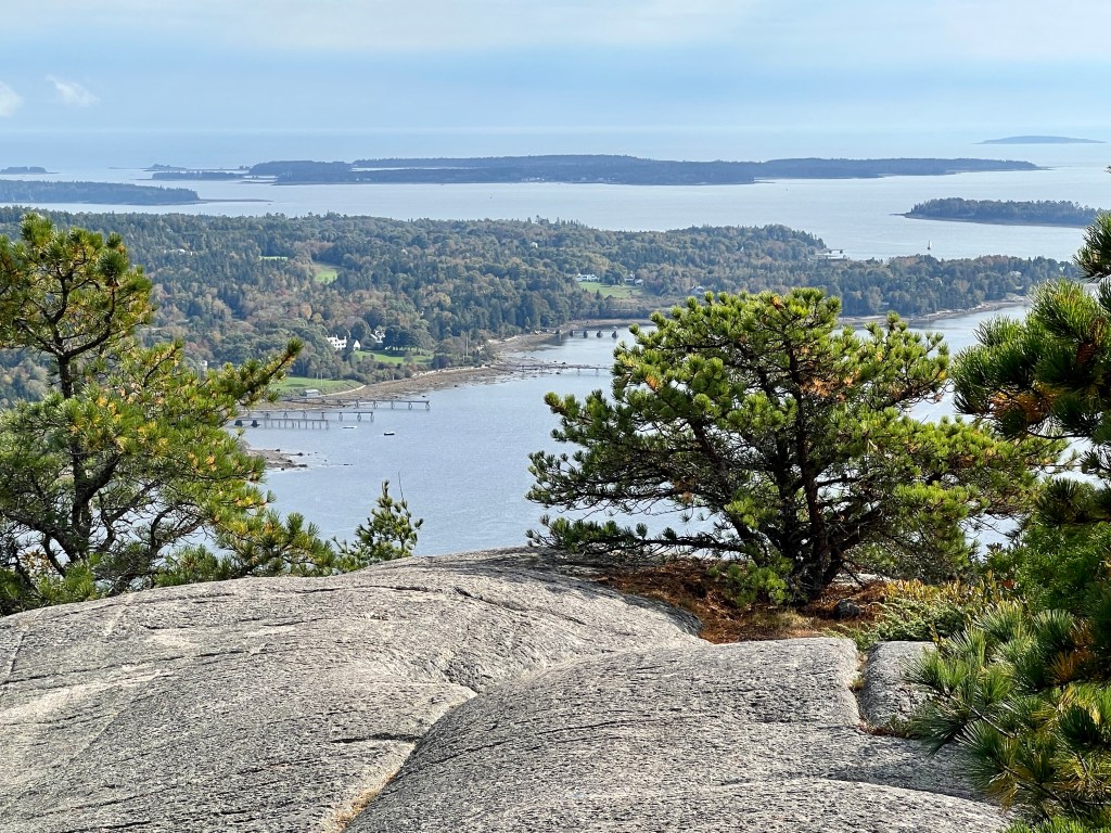 After that, we decided to attempt a loop over St. Sauveur and Acadia Mountains. We first stopped at the Acadia Mountain trailhead but found the parking lot full and cars parked on both sides of the road. Consequently, we decided to do the loop from the other direction and started at the Mt. St. Sauveur trailhead. This trail was quite steep, gaining elevation quickly to afford a nice view of Somes Sound: