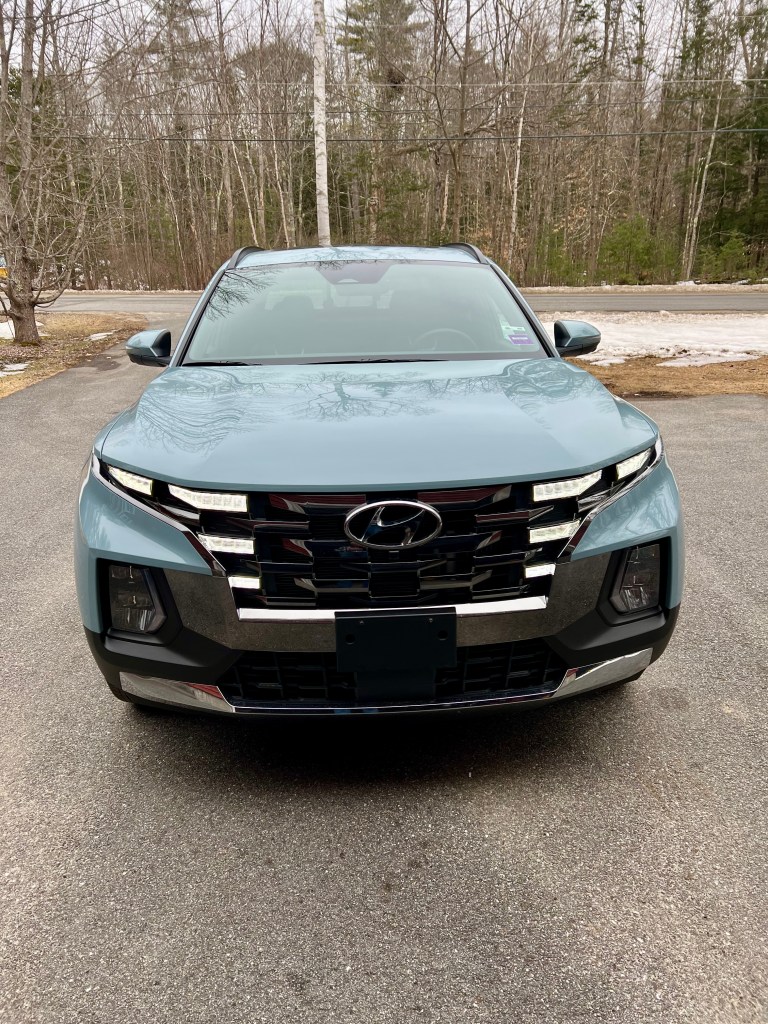 This is a Hyundai Santa Cruz — basically a Hyundai Tucson SUV with the back end sawed off into a four-foot truck bed, and with Hyundai Santa Fe heavy-duty suspension components underneath, propelled by a turbocharged in-line four-cylinder engine. Is it actually a truck? I’m not at all sure. It certainly doesn’t ride like one. And Hyundai itself does not call it a truck; rather, a “Sport Adventure Vehicle”. (!) Marketing-speak, I suspect, but although it can tow and haul at least something (it actually carries as much cargo as a Chevy Colorado), I would not take it rock-climbing up the nearest mountain – it has the wrong transmission for that sort of thing. So, the jury is out on the truck question.