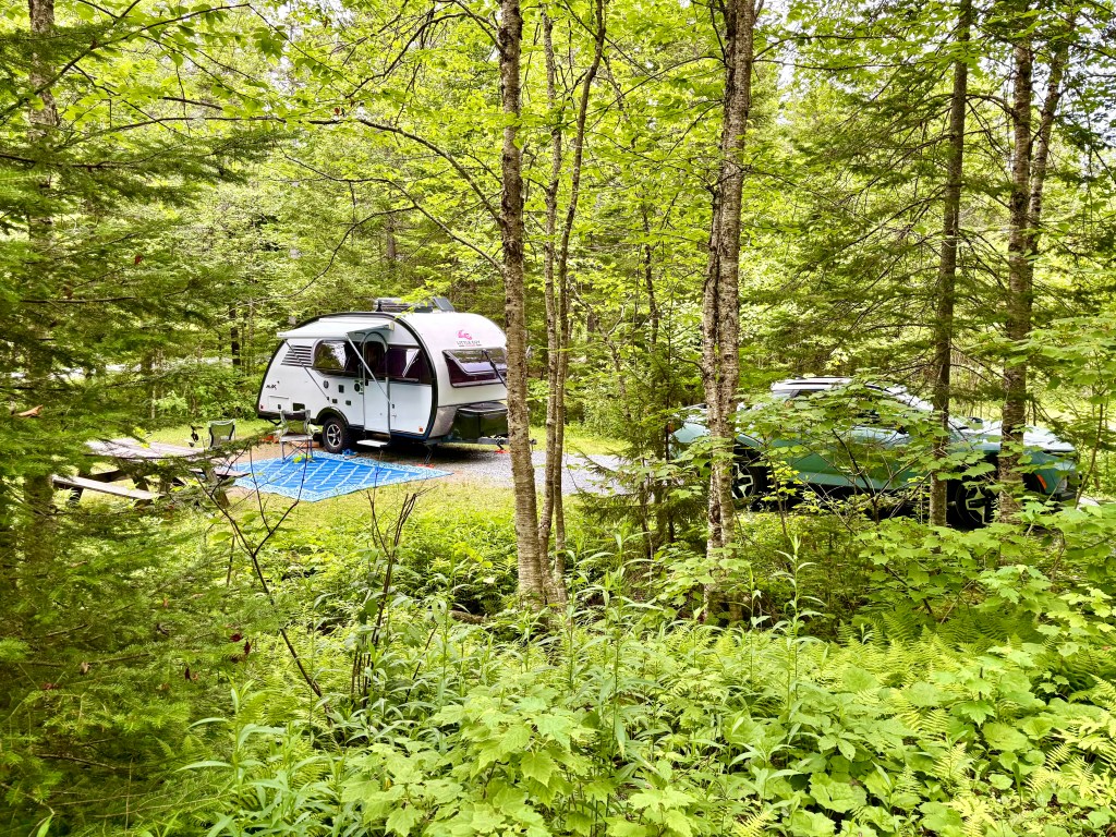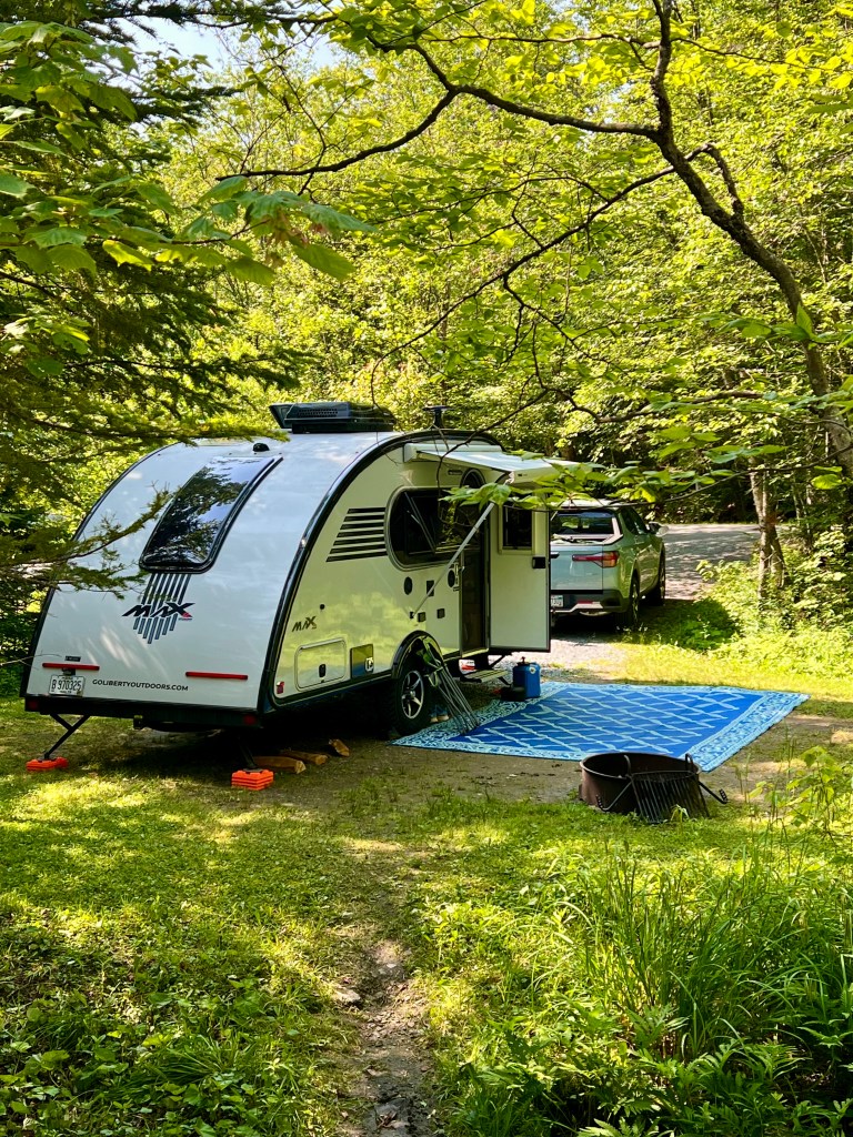 Golf pal Steve and I are in the midst of the summer’s first golf trip, this week to Woodford State Park in extreme southwestern Vermont. This is a nice park hewn out of the Green Mountain National Forest, with widely spaced and secluded campsites in three discrete loops, each with a modern bathhouse and an abundance of signs warning of bears in the park. On the basis of this information, we have latched the front and back windows of the Little Guy each evening on the theory that, if we were bears, those would be the windows we would choose for ingress. However, as of this writing, no bears have yet to show their furry faces.