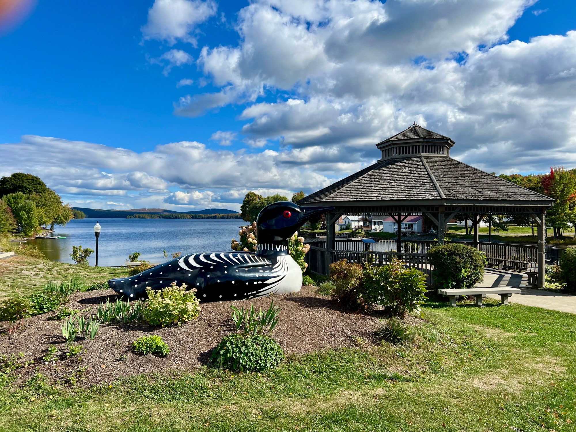 Today, I decided to access US-202 near Augusta and stay on it until its terminus at I-395 in Bangor. From there, I rode one very short interstate exit east to US-1A and followed that north and east to its junction with US-2. ME-157 leaves US-2 outside of Mattawamkeag (love those indigenous names!) and brought me to Medway. Less than an hour before reaching ME-157, however, one arrives in Lincoln, Maine, hard astride the beautiful Penobscot River. This lovely riverside park with its adorable and totally appropriate-for-the-location children’s play sculpture awaits in the center of town.