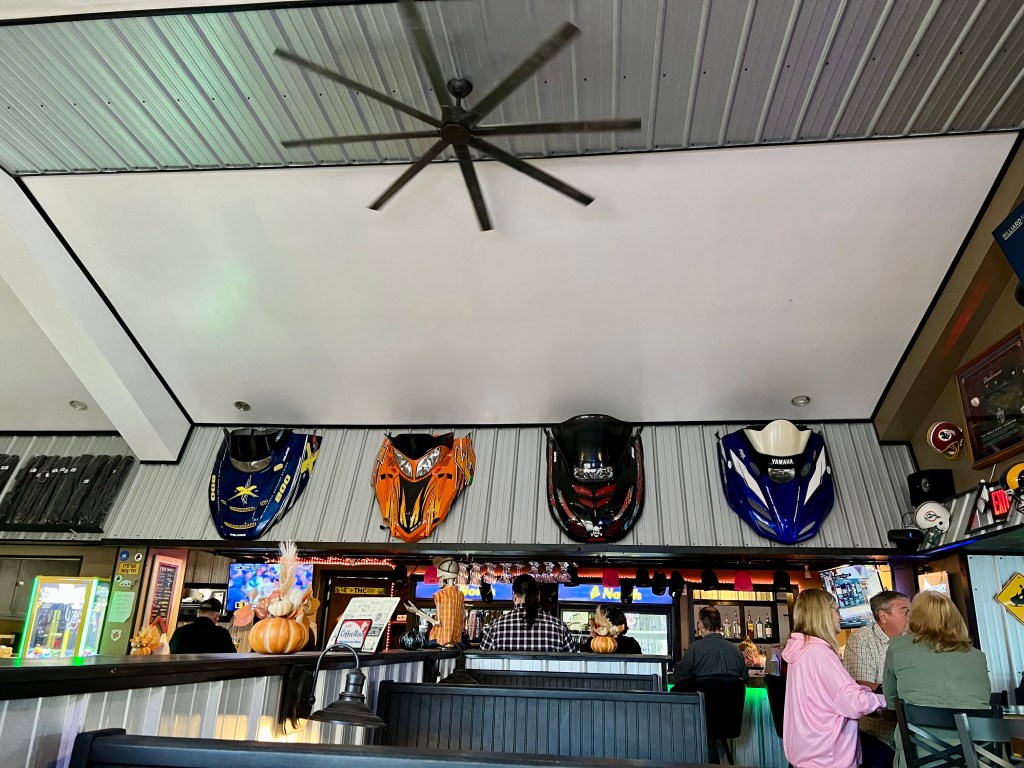 After settling in and walking the ITS to the bridge, I crossed the street to a restaurant for supper. This establishment, along with its bar and pool tables, is named “83 North” in honor of the nearby ITS and sports the most unique decor I have ever seen, for along with football helmets over the pool tables, there are snowmobile hoods mounted above the bar!
