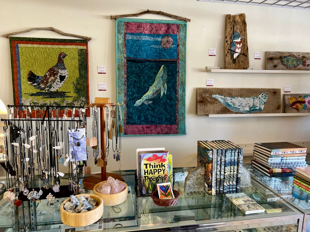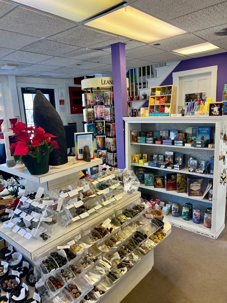 In addition to books, of course, the shop continues to offer items of interest for gemstone hobbyists, Reiki, tarot and Wiccan practitioners, and those looking for unique and one-of-a-kind gift items. Tina also offers retail space to several Maine creators, not only authors but also quilters and other craftsmen. Here are some views of the shop so you can see what I mean: