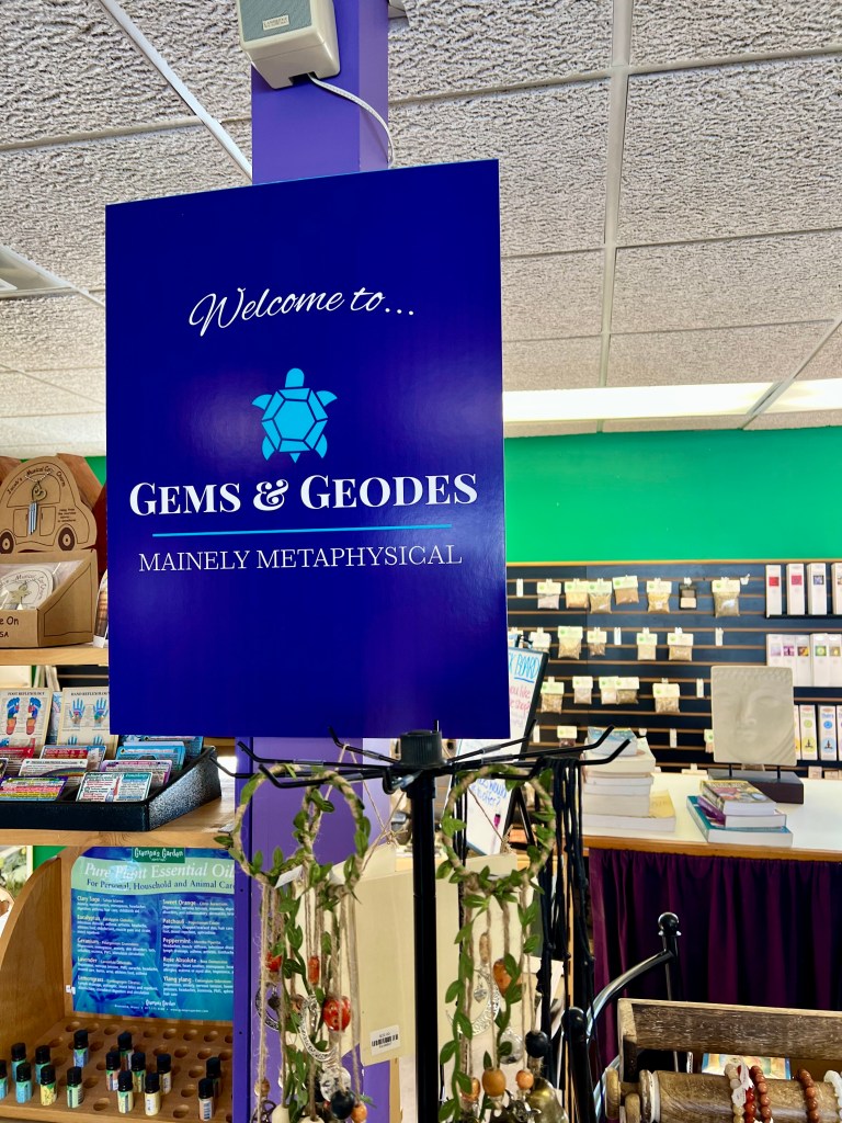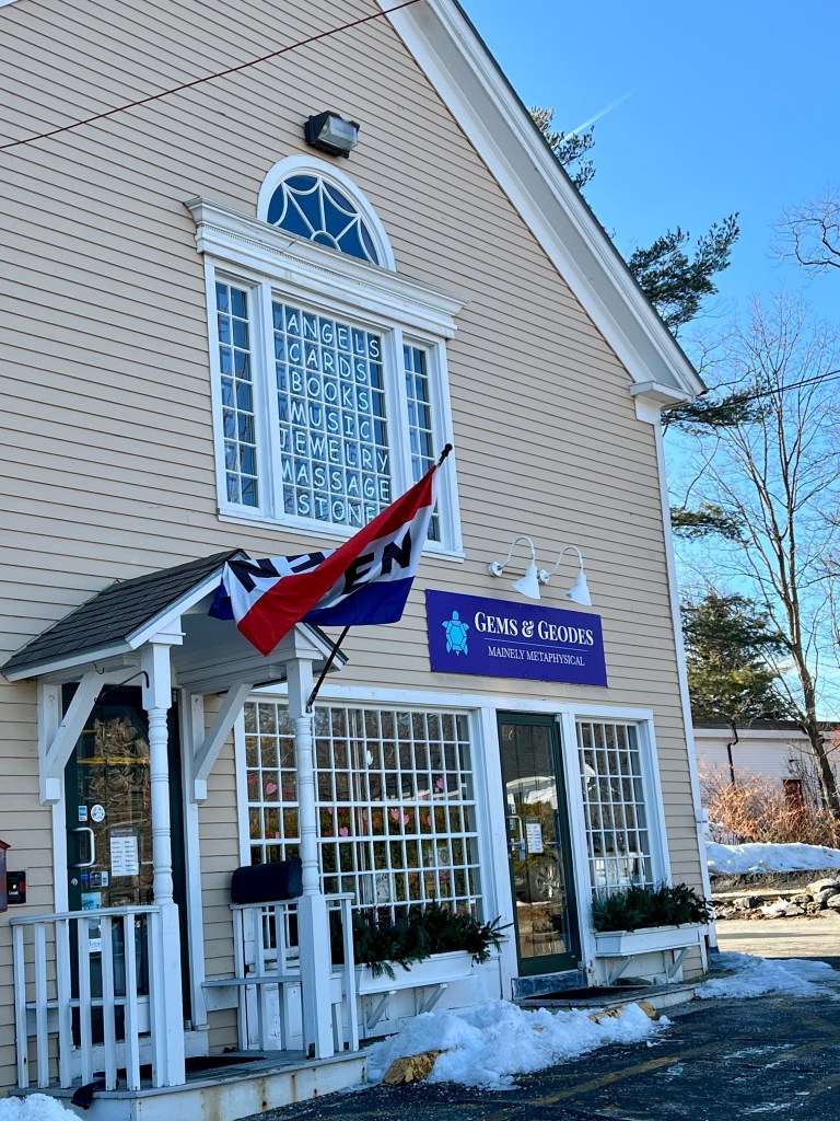 I entered the store to be warmly greeted by Tina Durepo, who (I discovered) had only just purchased the shop a couple of months ago and was now in the process of renovating and re-purposing it. It still has gemstones, incense, spirituality-oriented puzzles and games, and (I was pleased to see!) a books section with several rows of spirituality-themed offerings. Knowing that this was once the case, I had planned ahead (so I thought!) and brought two copies of my recent book “I Hope This Helps”, in hopes that I could arrive at some sort of arrangement whereby it could be offered for sale there at the newly-renamed “Gems and Geodes (Mainely Metaphysical)” shop.